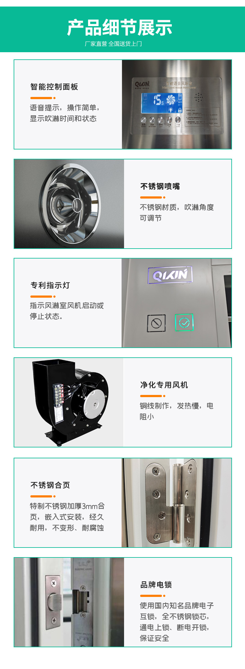 风淋室是一种通用性较强的局部净化设备,安装于洁净室与非洁净室之间,是人员进入洁净室所必需的通道。当人员进入洁净区时需经风淋室吹淋,其吹出的洁净空气可去除人员所携带的尘埃,能有效的阻断或减少尘源进入洁净区。